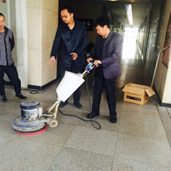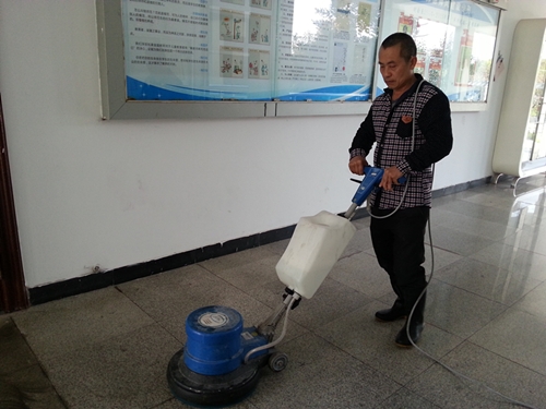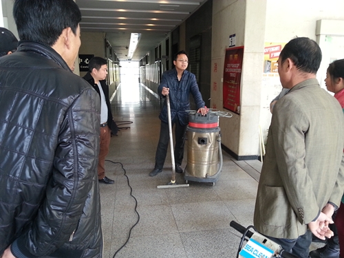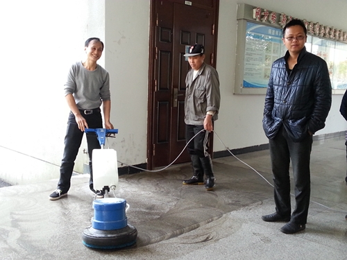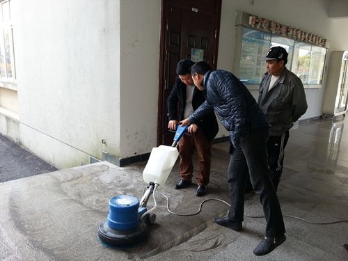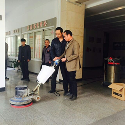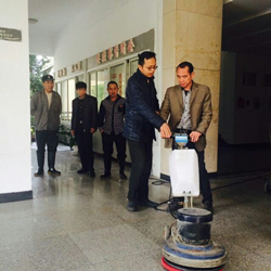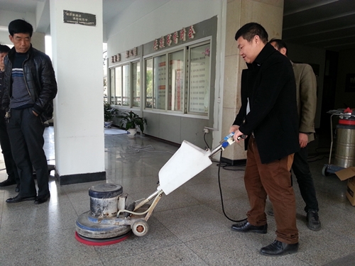 活动现场,专业指导师分别就设备的安装、加水、污水排放以及洗地机的使用等细节为保洁学员们一一演示,学员们在授课教师指导下,跃跃欲试,积极操作,通过试用洗地机,彻底清理人工清洗困难或无法清洗的陈旧污渍。同时,指导师强调在该设备的使用过程中一定注意对设备的维护,避免操作不当而造成安全隐患或机器损坏。课程之余,授课教师对学员的课堂表现予以肯定,并幽默地说自己和学员是相互学习的关系。