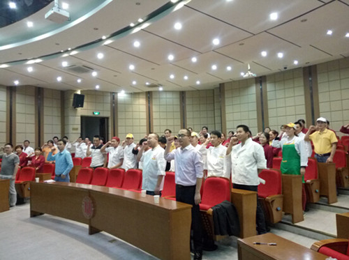 培训中,张老师运用多媒体、案例、小魔术、逆向思维摆T字、看签名识人及抢答送字等方式提出五常法守则“常组织、常整顿、常清洁、常规范、常自律”并阐述其意义,带领学员们庄严宣誓:“五常管理、从我开始、坚持不懈、直到成功、一定成功”。培训内容丰富多彩,现场气氛热烈,层出不穷的案例引得大家哄堂大笑,各类小活动学员们更是争相而上。