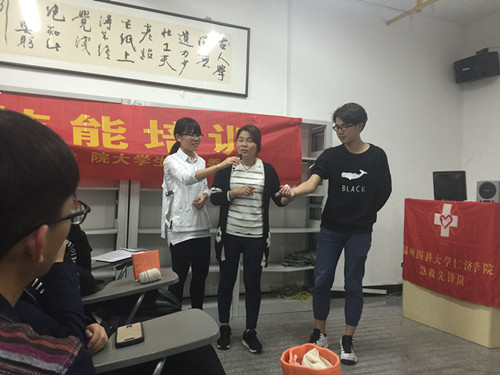 为发扬人道主义精神,保护人的生命与健康,促进人类和平发展,提高自救互救技能。11月25日,后勤基建处(四方公司)近20人参加了院保卫处组织开展的红十字会救护员技能培训。温州医科大学仁济学院应急先锋队的两位老师分别讲解了排除呼吸道异物、胸外按压、人工呼吸及几种常见的包扎方法等技能,课堂运用PPT生动讲解与师生现场模拟操作的方式穿插进行。通过学习急救知识,提高了后勤员工自救互救基本方法,不仅可以救助他人,更能保护自己。