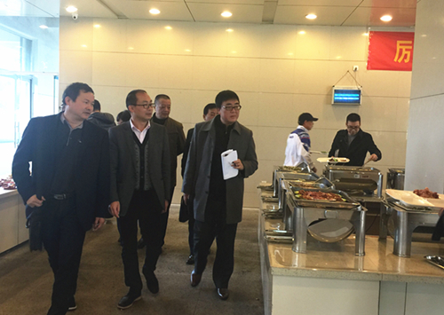 会上,后勤处处长首先代表学院对倪主任一行的到访表示欢迎,并就我院餐厅基本情况作了简单说明。分管副处长分别从我院教职工和学生餐厅的经营管理模式等方面介绍了我院餐厅的自身特色,针对食品安全监控体系介绍了我院24小时服务热线、学生监控队伍和膳管会等情况。随后,双方就餐厅管理、工作人员管理等细节方面进行了深入交流与研讨。会后,张处带领倪主任一行对师生餐厅进行了实地考察。