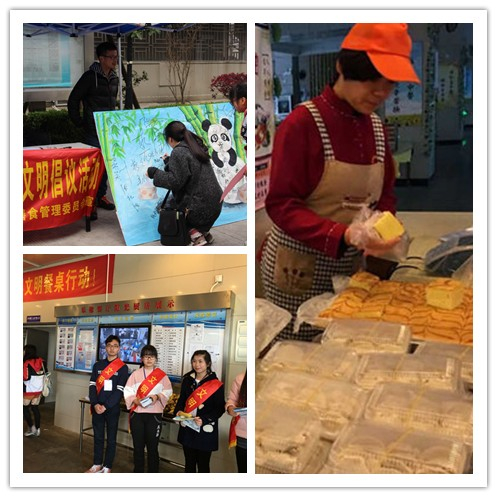 积极开展形式多样、内容丰富的特色活动。一是在餐厅设置文明餐桌行动标牌、告示和海报宣传,开展“今天不剩饭,从我做起”等专题宣传活动,在全院内掀起一股“文明用餐、节俭惜福”的“光盘行动”热潮,营造了良好的文明用餐氛围;二是树典型,求创新。在餐厅管理上实行大胆的改革创新,提供多元化服务模式,实现标准化管理,提升服务品质及师生满意度;三是严格落实“千万师生饮食放心工程”。在餐厅全面禁用转基因用油,严格管理食材进货渠道,以家用厨房标准采购各类食材,确保质量可靠,保障日常食品安全;四是开展教工餐厅福利行动。每个工作日下午按成本提供包点,每周安排绿色副食品,菜篮子放心菜及直销的特产品供教职工任意选择,全方位丰富教职工的餐桌。