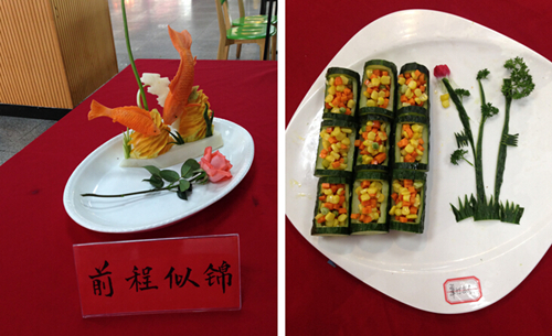 本次美食节活动设置了展示区、菜肴观赏区、低价套餐售卖。美食节当天,中快餐厅的大厨们展开了一场舌尖上的美食PK。各种菜品造型奇特、雕刻精美、色味俱佳,师生们纷纷举起手机拍照留念。