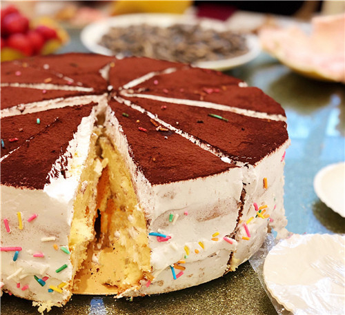 后勤员工代小辉闲暇为寿星们亲手制作的蛋糕