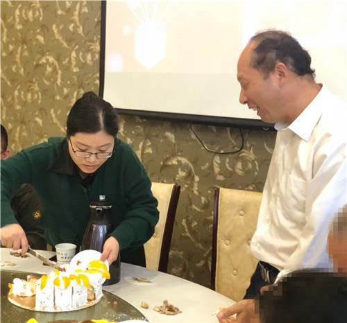 后勤办公室副主任黄凡为寿星们分蛋糕